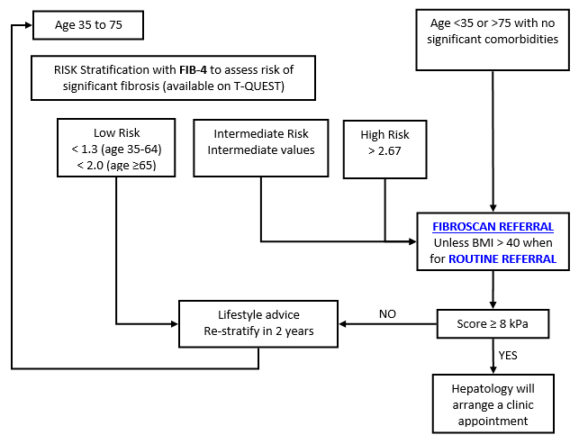 Non Alcoholic Fatty liver Disease (NAFLD) pathway For patients with isolated raised ALT and/or GGT and fatty liver at ultasound scan or Type 2 diabetic or morbid obesity with BMI >35 kg/m2 Like Loading...